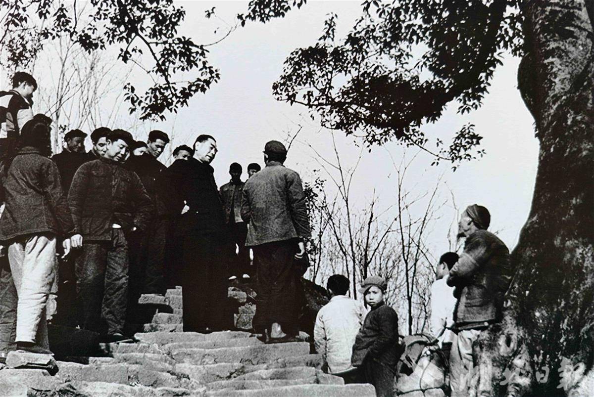 1958年2月周恩来视察宜昌山区农村。(湖北日报记者 张其军 摄)
