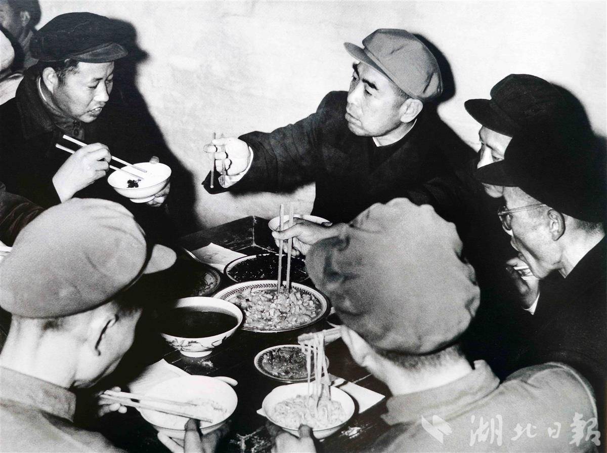 1958年12月周恩来与应城地、县委书记一起进餐。(湖北日报记者 张其军 摄)