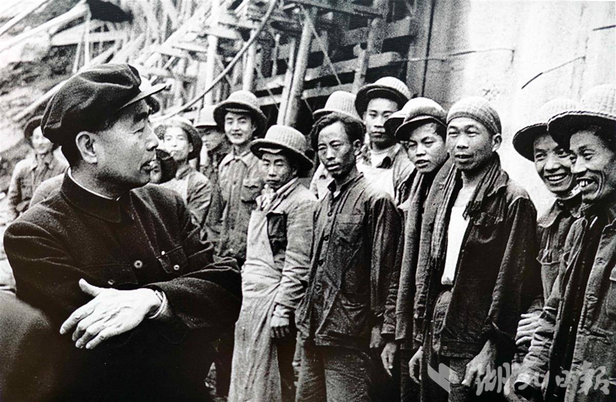 1958年3月周恩来视察三峡工地。(湖北日报记者 张其军 摄)