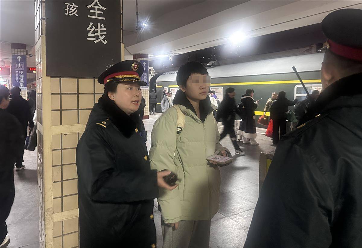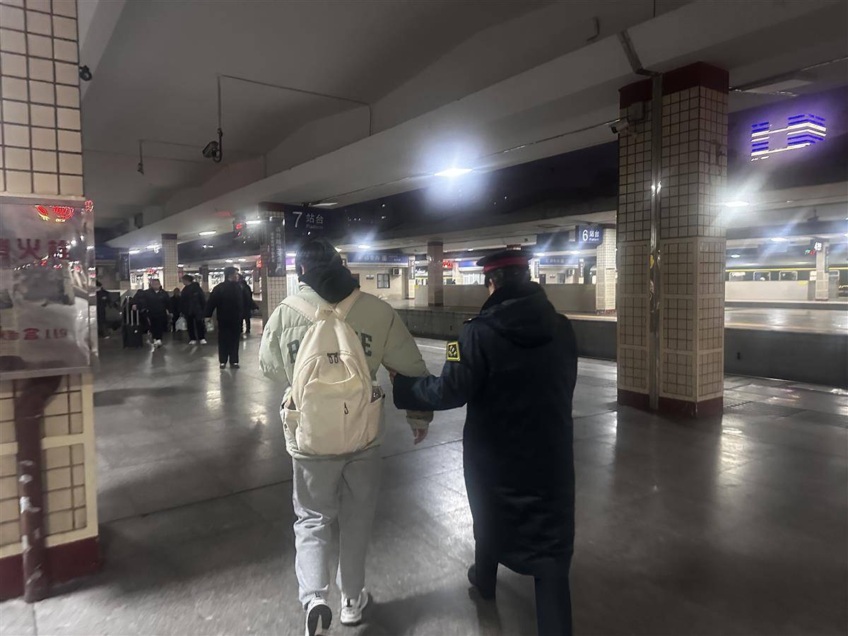 李隆萍亲自将女孩交到车站值班员手中,并再次温柔安抚,确保交接过程安全稳妥