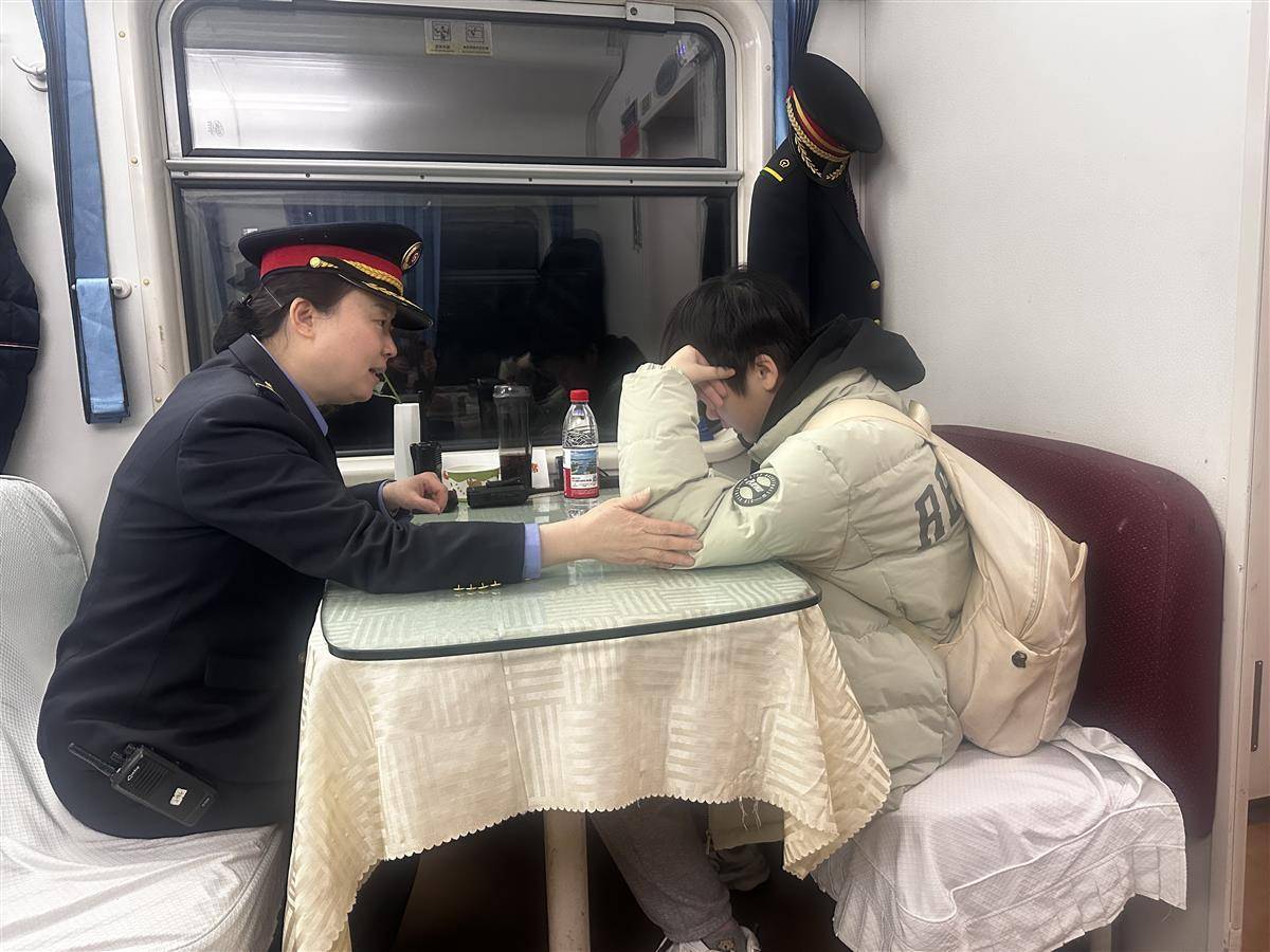 李隆萍立即查询,确认该女孩正在14号车厢。她迅速赶到车厢找到女孩,并告知其家人正在急切寻找。女孩情绪明显抵触,拒绝与家人联系。李隆萍没有强行催促,而是将女孩带到餐车,递上一瓶水,轻声细语地耐心开导。同时,她与女孩的小姨取得联系,告知孩子已找到但情绪尚未平复。
