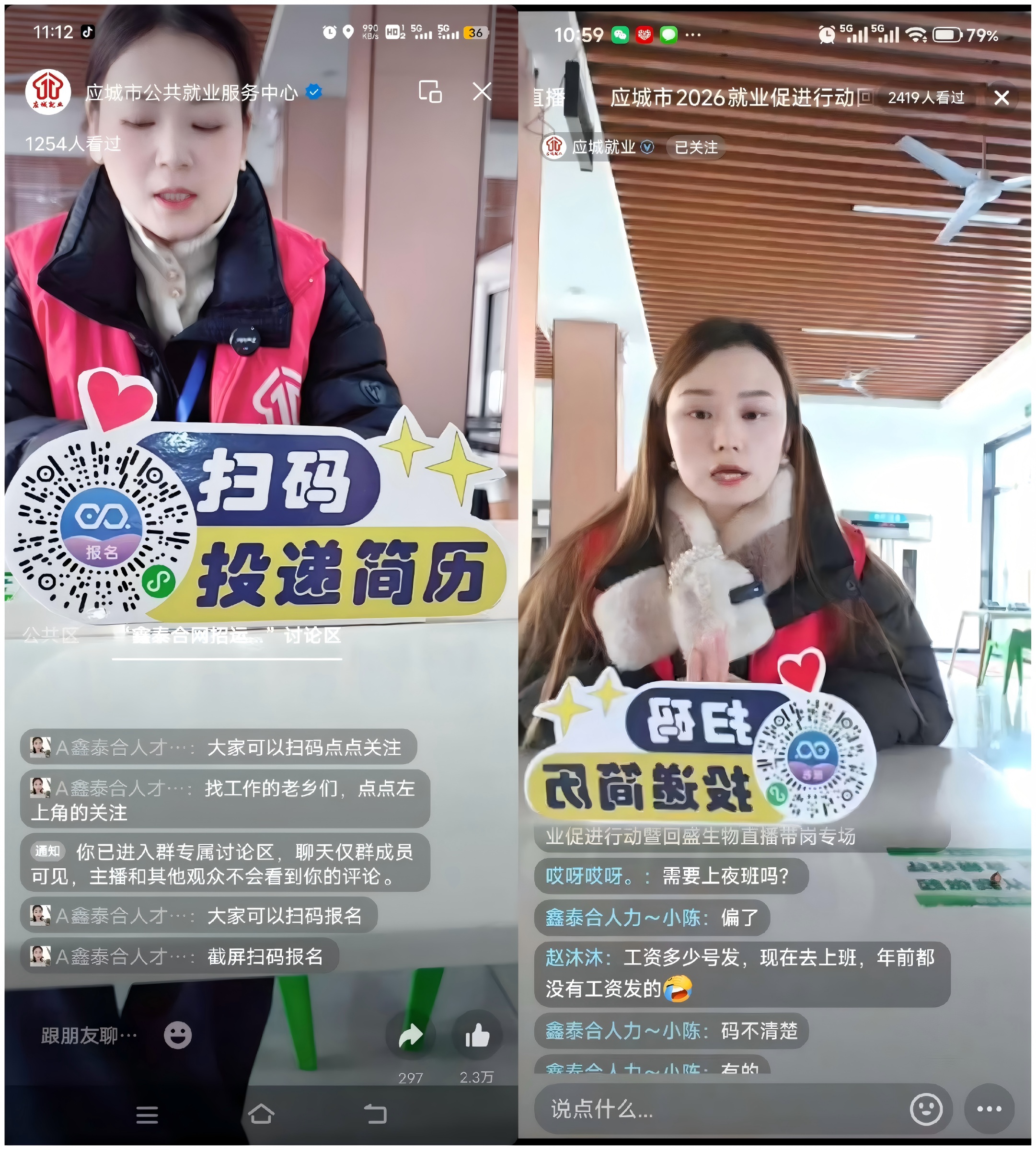 直观的现场展示和即时的互动交流极大地激发了求职者的热情。据统计,两小时的直播吸引了超过1.02万人次在线观看,线上接收岗位投递简历86份,其中大专以上学历占比14%,初步达成就业意向48人。