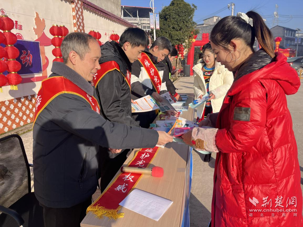 村民在享受刨汤宴美食的同时,也享受到了法治大餐。由柏杨坝司法所、派出所、市场监管所、综合执法中心和镇社区戒毒康复中心等部门联合组成的普法宣讲团也来到了活动现场,为参加刨汤宴的村民和嘉宾送上了新年的法治大餐,为村民解答法律咨询、赠送普法课本和各类法治宣传单、发放法治物件、播放法治三句半音频,法治宣传现场好不热闹。司法所雷所长、派出所张为鑫还登台就冬季防火安全、道路交通安全及新的《中华人民共和国治安管理处罚法》对现场群众进行了较为详细的讲解。