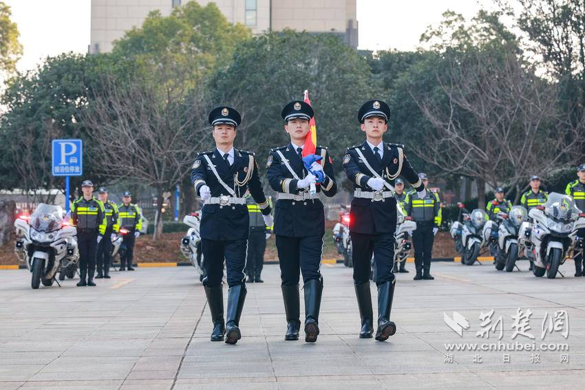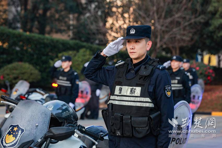 警旗升至杆顶,在武汉公安先锋民警涂凯峰的带领下,全体人员高举右拳,庄严宣誓:“我是中国人民警察,我宣誓……”铿锵有力的誓言回荡在广场上空,久久不散。民警们眼中闪烁着激动的光芒,这熟悉的誓词,每一次重温,都让人回想起从警初心与肩上沉甸甸的责任。