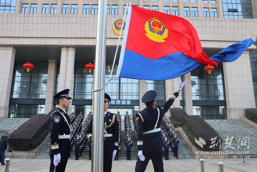 荆楚网(湖北日报网)讯(记者 白云 通讯员 谈小珂、汤文慧、叶笑涵)冬日暖阳沐警营,警旗飘扬铸忠诚。2026年1月8日,在第六个中国人民警察节即将到来之际,武汉市公安局江夏区分局广场上气氛庄重热烈,百余名民警代表身着警服、精神抖擞,参加中国人民警察节升旗仪式,以简朴而隆重的方式,致敬属于全体人民警察的光荣节日。
