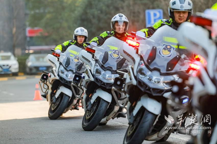 现场,除了民警代表,还有两支特别的队伍引人注目——郑店公安检查站的快反队员和交通大队的汉警快骑队员。24台警用摩托车整齐列队,24名队员身姿挺拔。他们是江夏街头常见的平安风景,此刻在警旗下与战友们共同接受荣耀的洗礼。