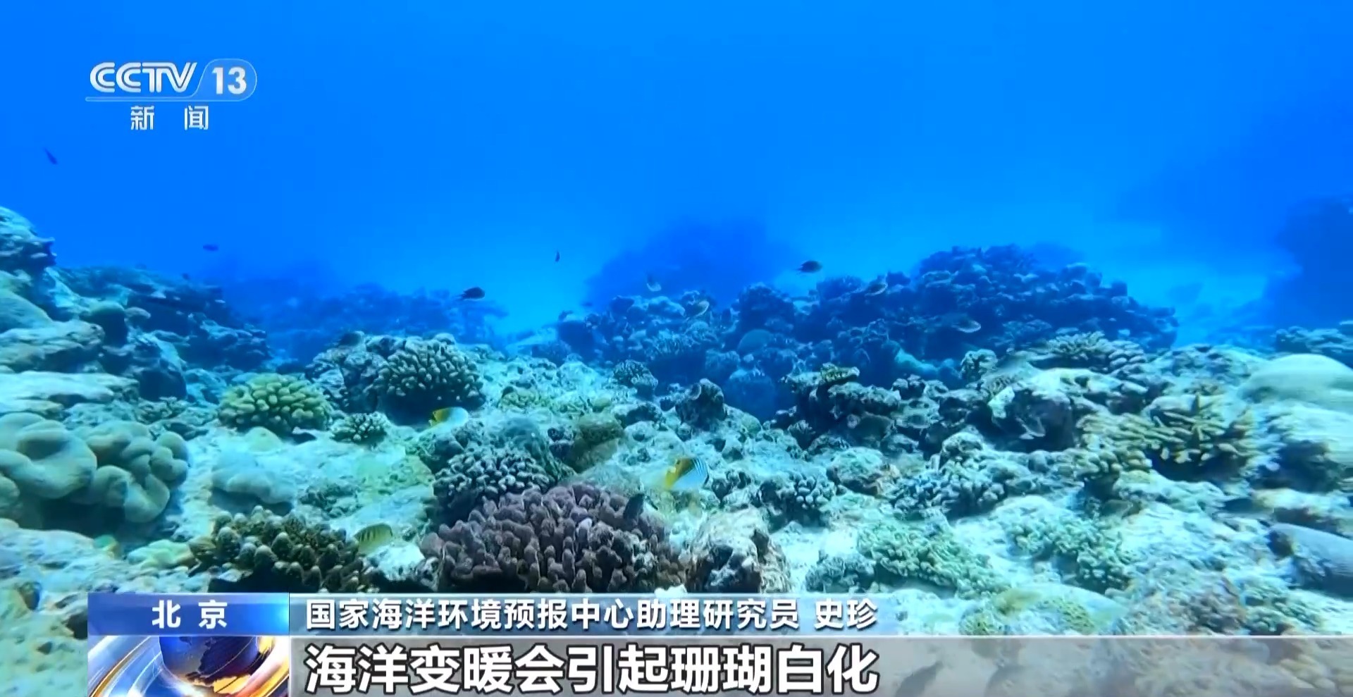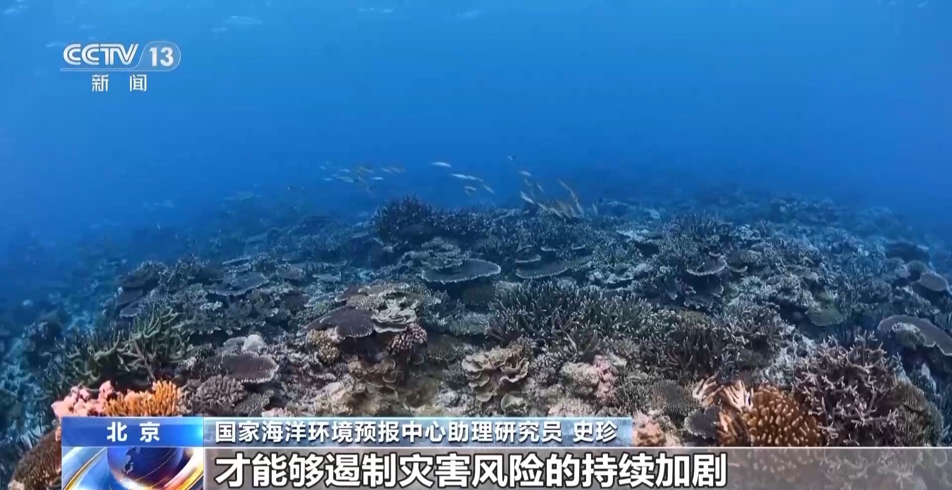 国家海洋环境预报中心助理研究员 史珍:对珊瑚礁来说,情况更是严峻。海洋变暖会引起珊瑚白化,如果高温持续时间过长,珊瑚就会死亡。而珊瑚礁是“海洋热带雨林”,它的消失会导致生物多样性骤降,进一步加剧渔业资源危机,同时让海岸失去天然的防波屏障,使得风暴潮对沿海的冲击更加直接。