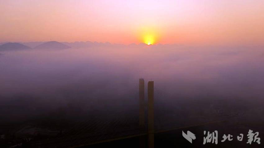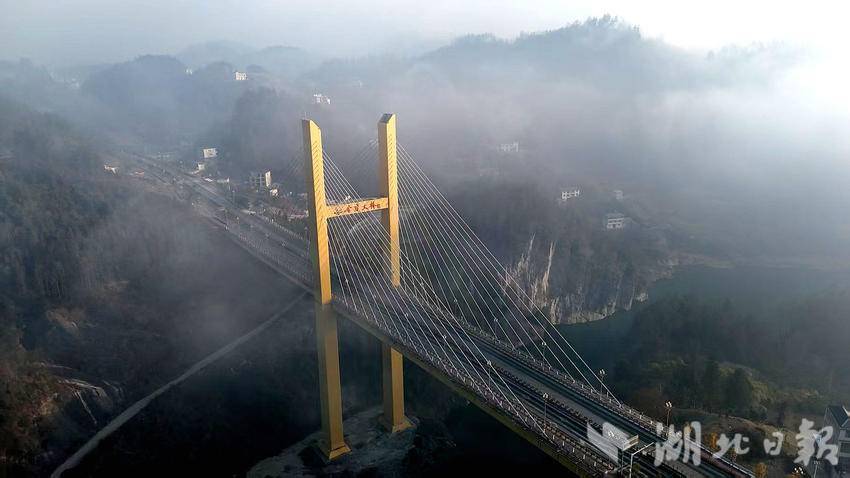 湖北日报客户端讯(通讯员李宗海、胡自丹)1月9日清晨,建始县金建大桥笼罩在晨雾与朝阳的交织中,呈现出自然与基建交融的绝美画面。