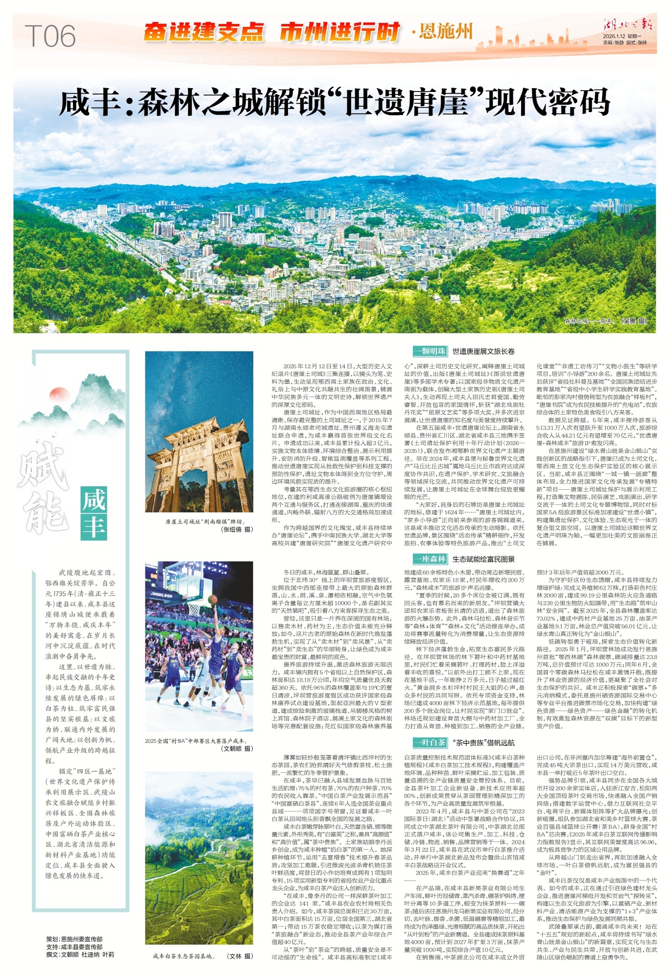 生态定调。作为长江中上游生态屏障,恩施9870.84平方公里生态保护红线、1.5亿立方米森林蓄积量均居全省首位,这是大自然的本色,更是高质量发展的底色。