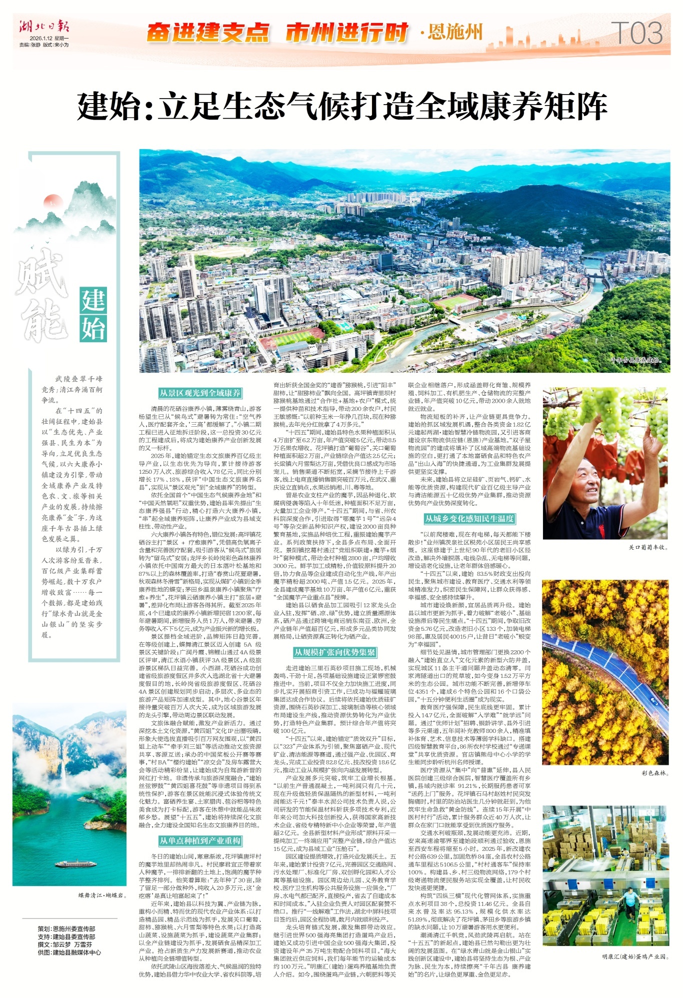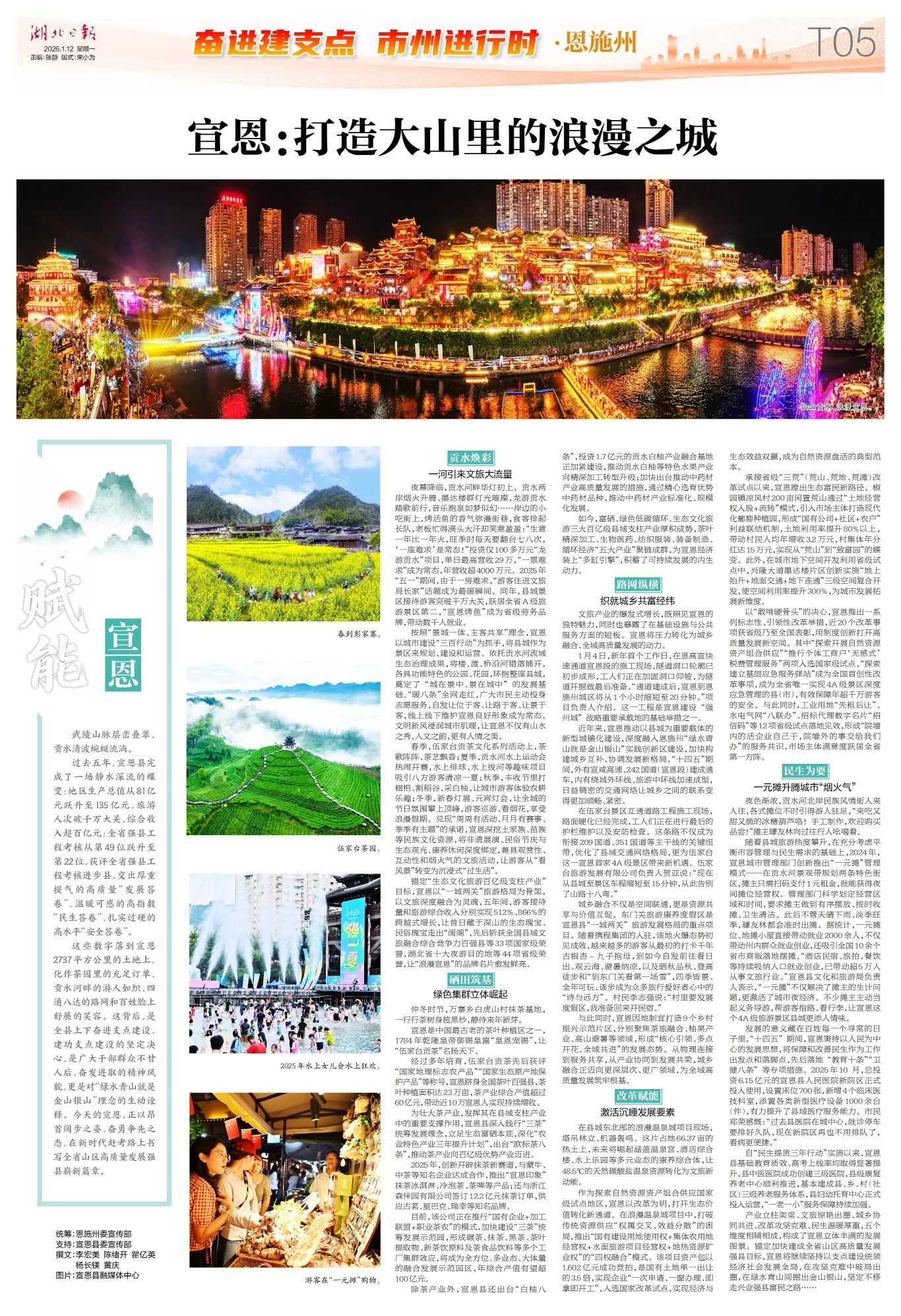 锚定打造国家重点生态功能区、国家农业绿色发展先行区、全国硒产业高地、世界级旅游目的地和武陵山重要枢纽,“十五五”时期,恩施加快建设“绿水青山就是金山银山”实践创新区的新征程更加壮阔。