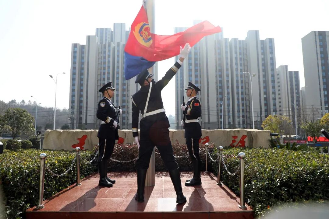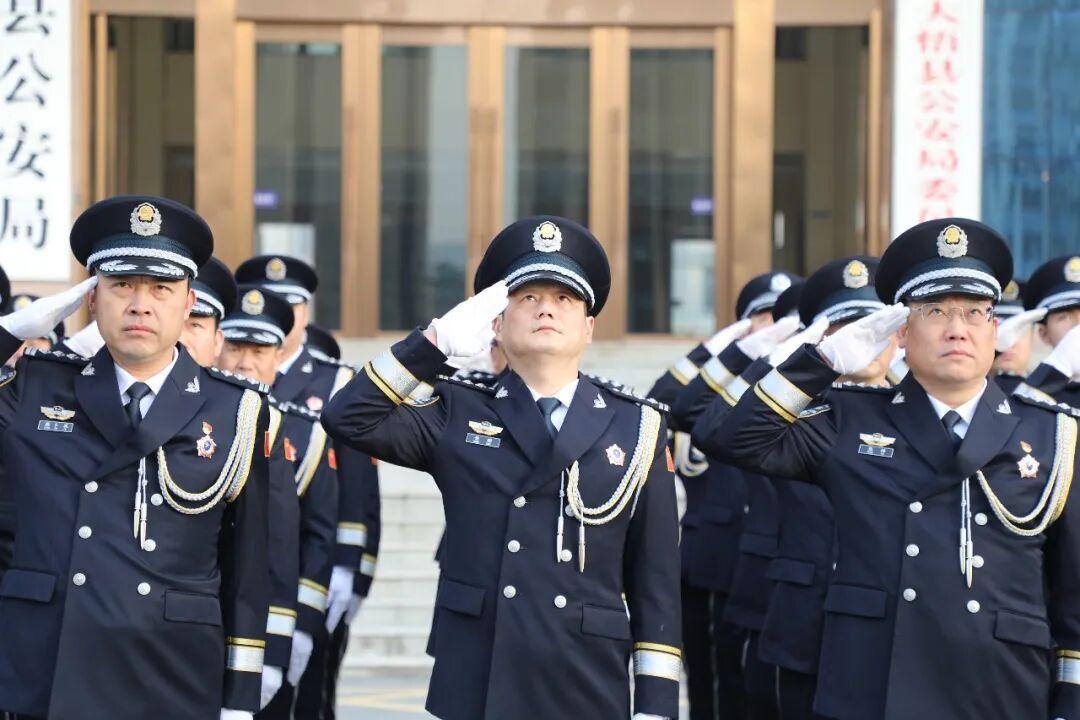 上午8时30分,仪式正式开始。七名护旗手英姿挺拔、步伐铿锵,护卫着中国人民警察警旗行进。伴随着雄壮激昂的《中国人民警察警歌》旋律,红蓝相间的警旗冉冉升起,迎风飘扬。全体人员肃立注目,向警旗致以崇高的敬礼,现场气氛庄严而神圣。