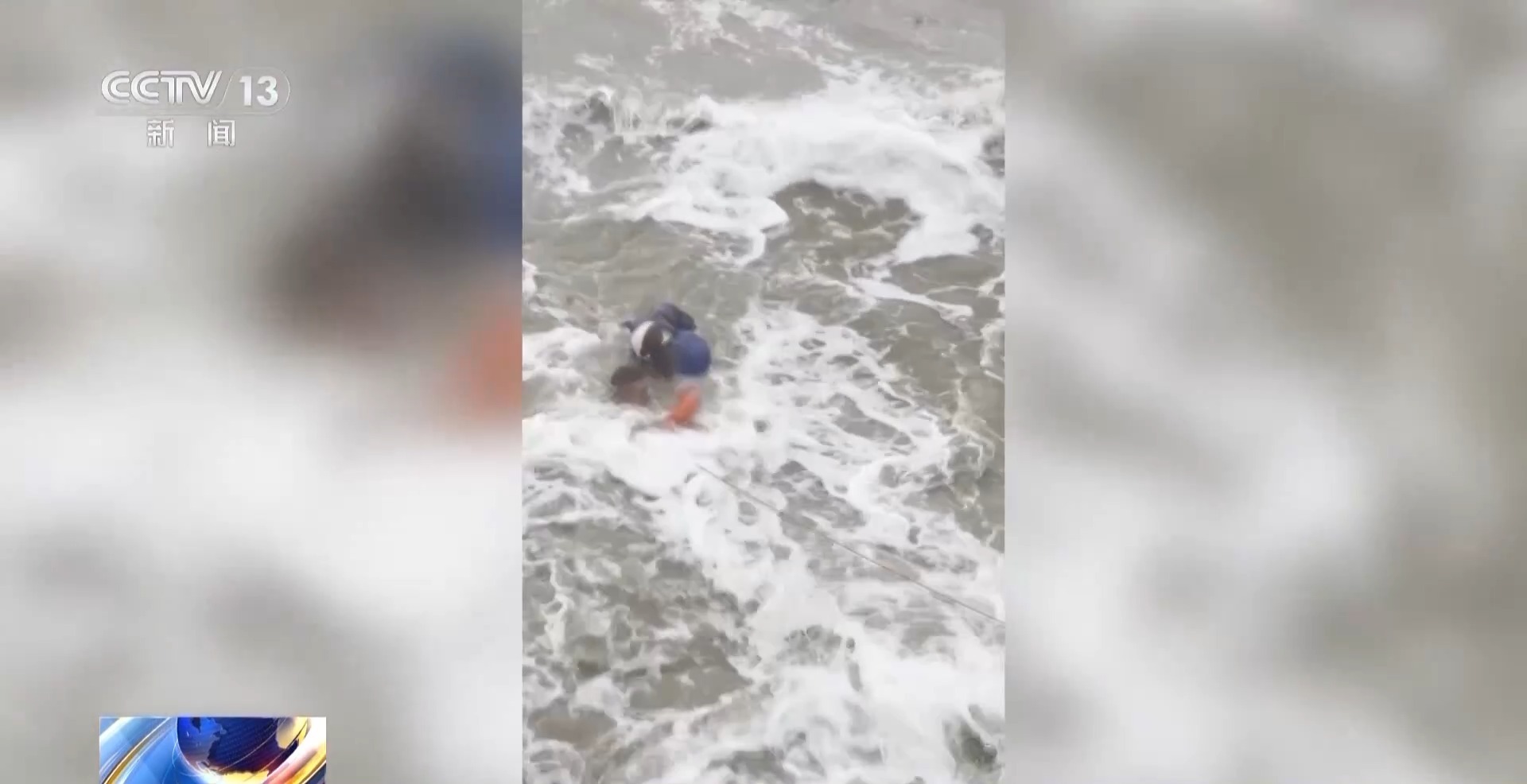 连云港市港航公安局西港派出所民警 王颖超:但是他跟我说他是国家级救生员,当时我问你是否能救,因为浪太大了,他跟我说没问题,他有信心。我用游泳圈跟他配合,他叫我负责拉,他下去负责救。