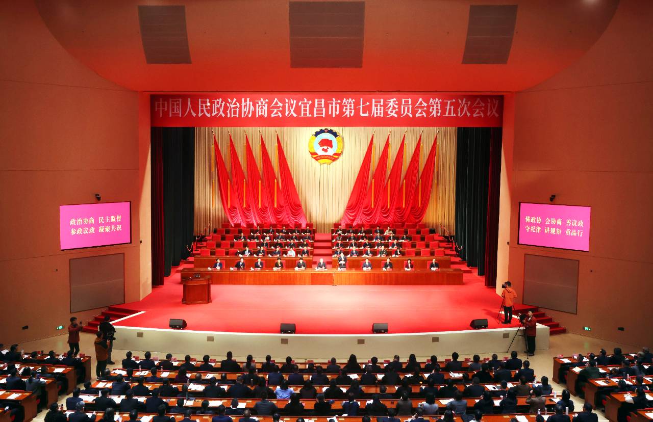 1月13日上午,在雄壮的国歌声中,中国人民政治协商会议宜昌市第七届委员会第五次会议在三峡宾馆会议中心开幕。