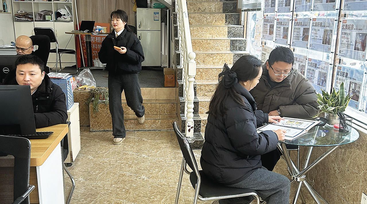 1月10日上午,记者走进武汉链家福星城店,店内经纪人有的正在电脑前接打咨询电话,有的则忙着带客户出门看房。