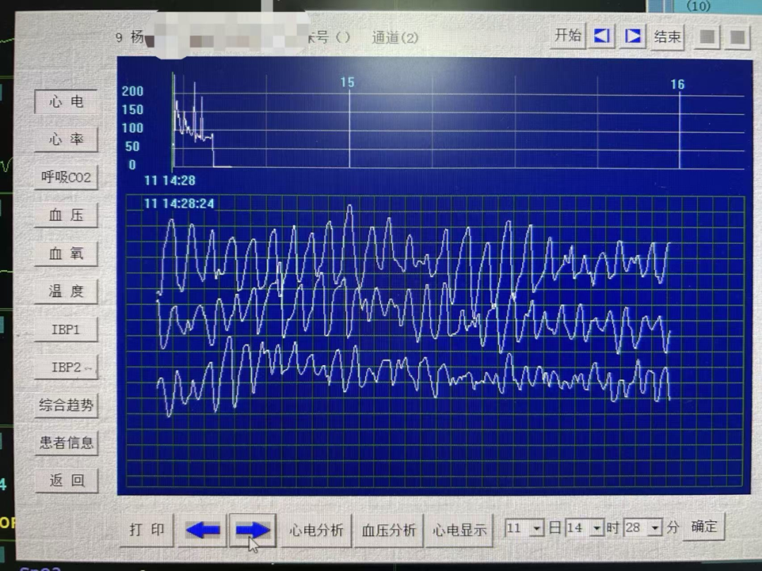 当日14时28分,心血管内科责任护士李文秀如往常一样,专注地监测着遥测心电监护仪。突然,一阵急促而不规则的警报声响起——那是9床杨婆婆的遥测心电监护仪发出的警报。李文秀瞬间将目光锁定屏幕,只见原本规律的心电波形已变为杂乱无章的“蚯蚓状”,这是最危险的心律失常之一:心室颤动(室颤),意味着心脏已失去有效泵血功能,患者生命正以秒为单位流逝。