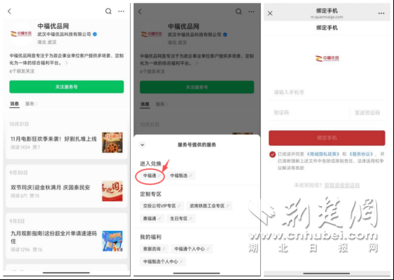 签收券码后,微信搜索“中福优品网”服务号,点击“服务-进入兑换-中福通”,绑定手机;