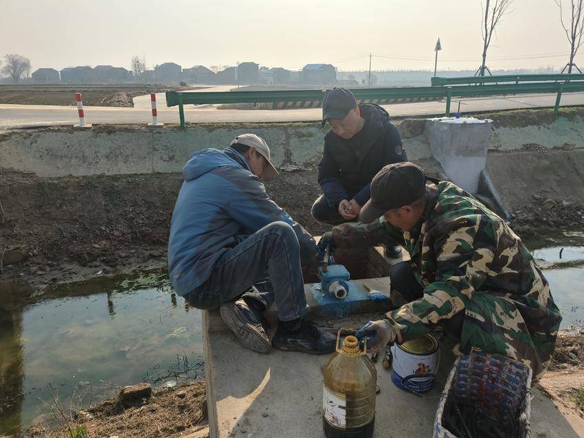 1月12日,在曾店镇中干渠维修加固工地东袁段,县水利和湖泊局的施工人员正手持振动泵对渠道进行基槽处理;在西袁段,施工人员拿着油刷,给剅闸零件上润滑油……现场一片忙碌有序的景象。