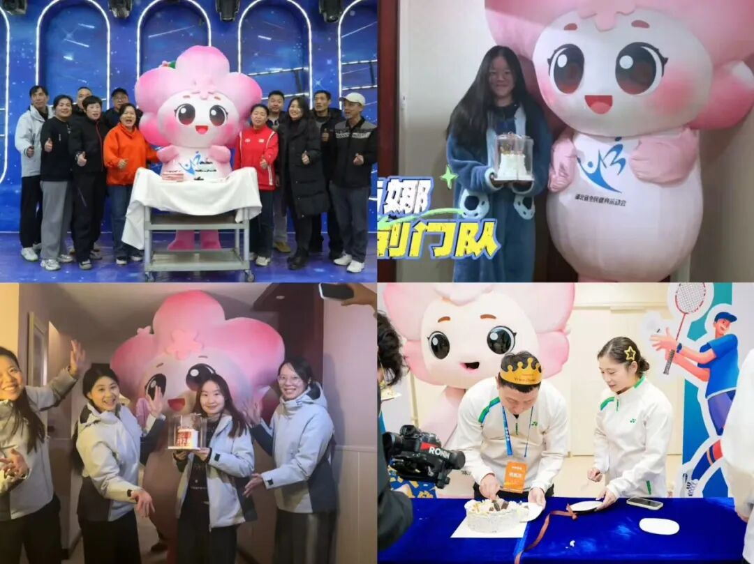 (吉祥物“孝笑”陪运动员过生日)