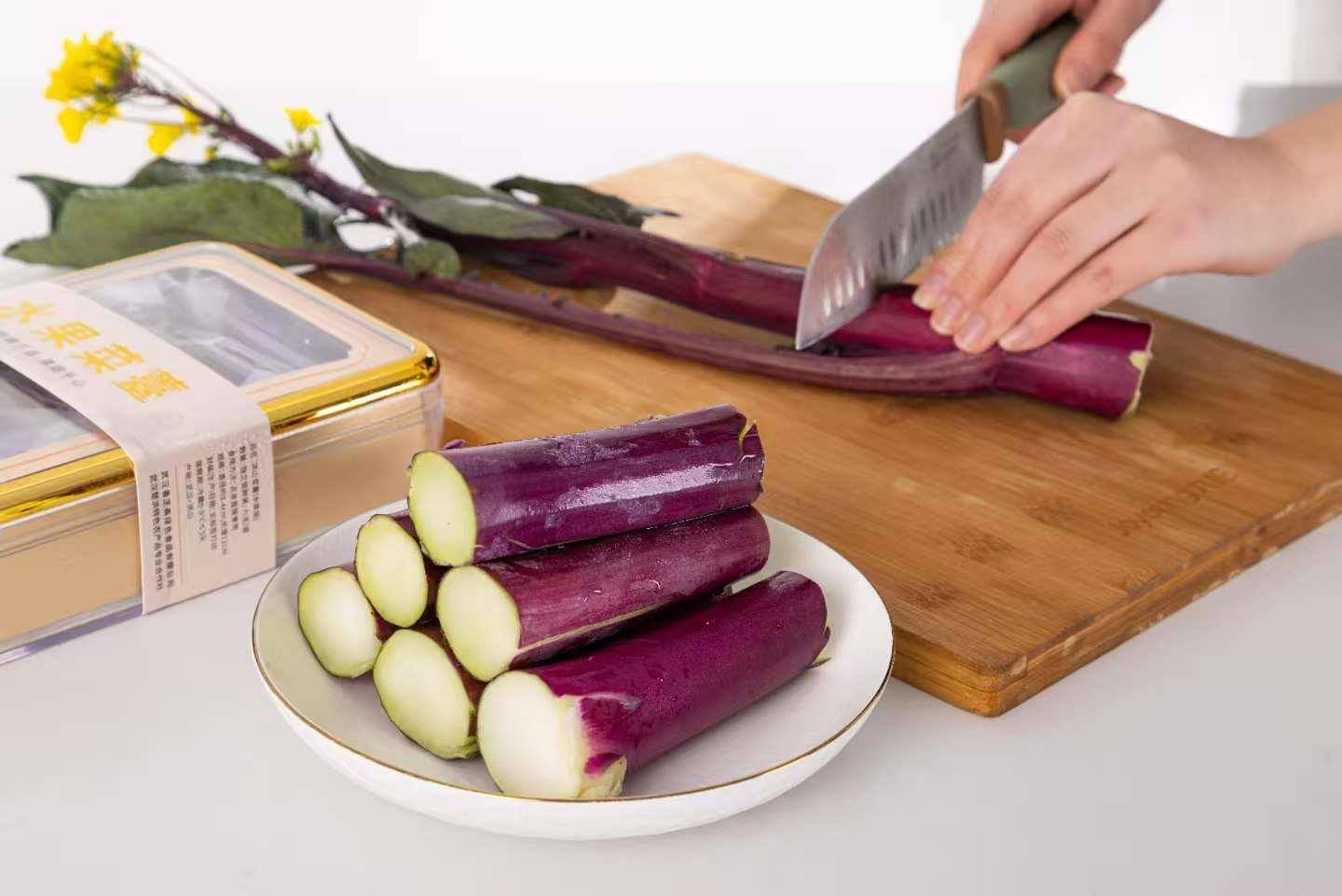 “我们的菜薹都来自武汉市洪山区先建村,邻近野芷湖与汤逊湖,空气湿润,土壤肥沃,品质较为突出。”陈日东说。由于只取每根菜薹最精华的约10厘米根部,因此出品率较低,约两斤精品菜薹才能制作出一斤“水果菜薹”。