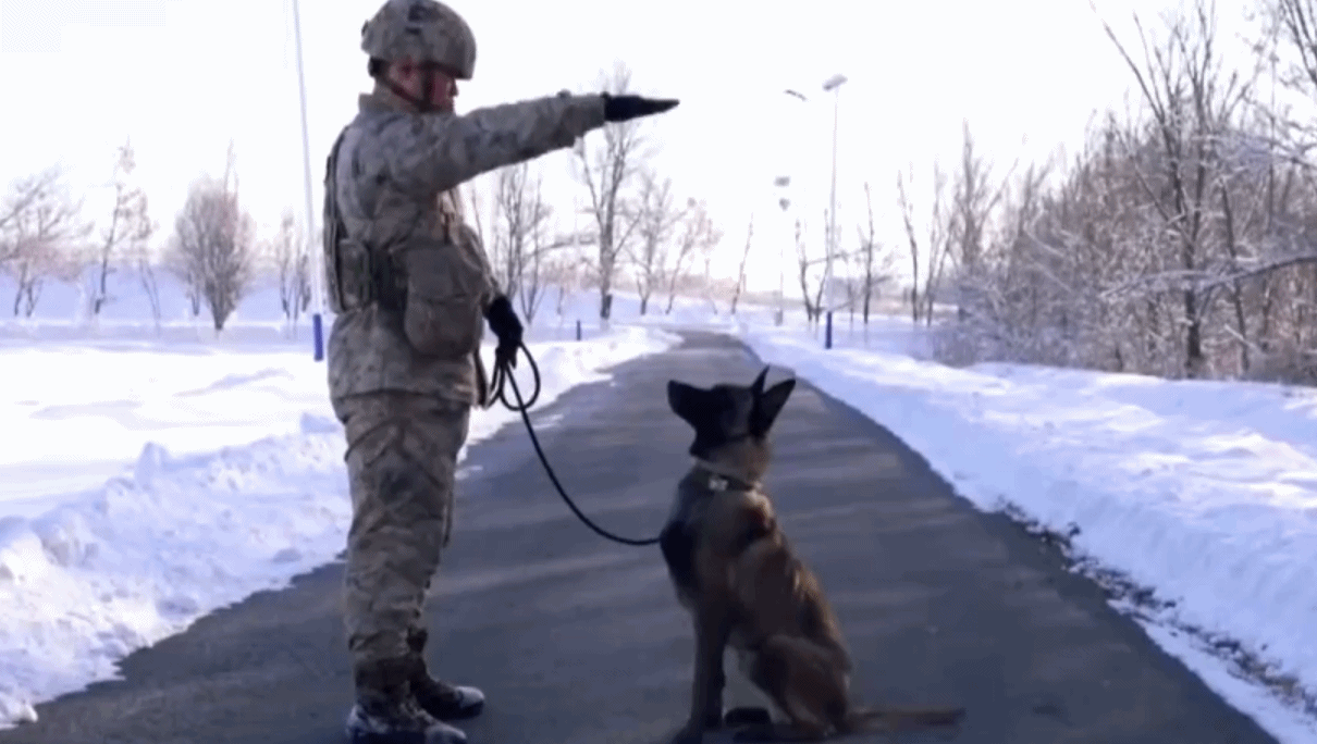 基础服从训练,是军犬执行一切任务的基础,要求军犬在不同环境中迅速准确地响应“坐”“卧”“随行”“警戒”等指令,建立条件反射,确保在实战中与训导员高度默契。