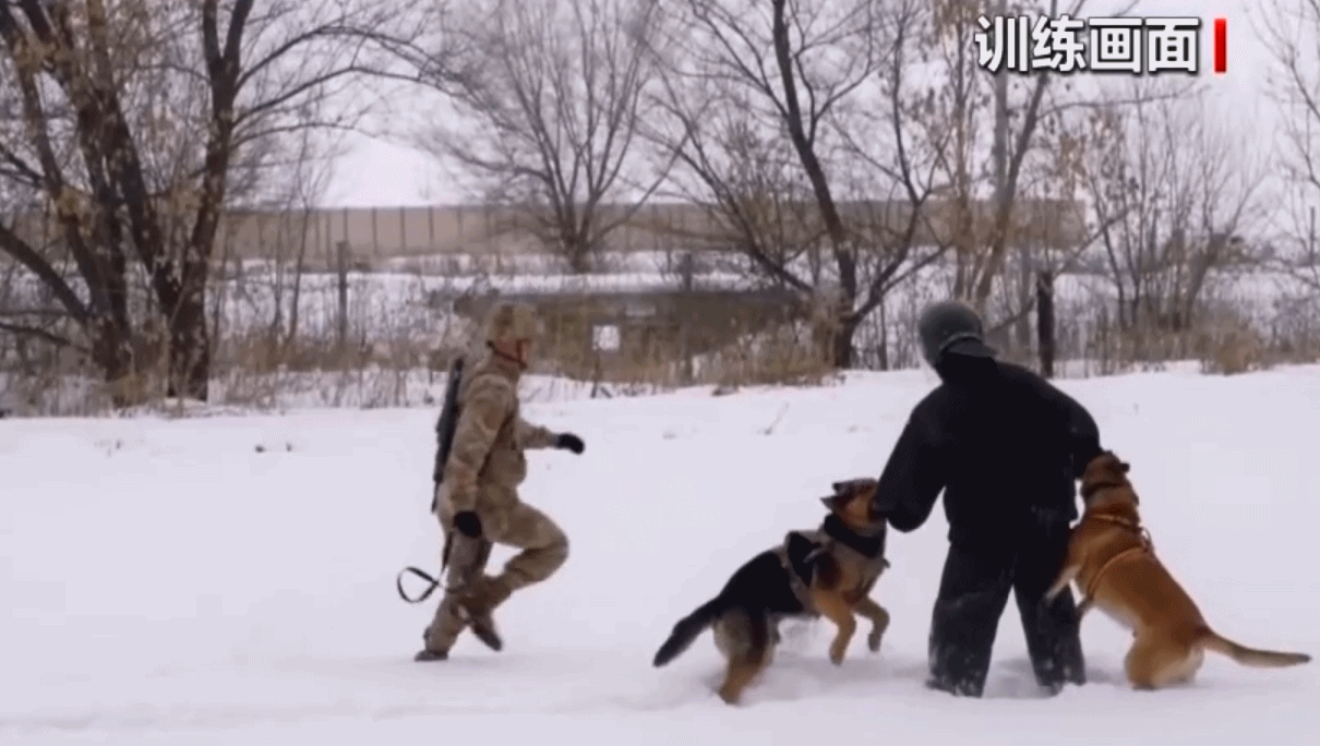 实战化扑咬训练,高度模拟边境对峙、突发闯入等真实情境,考验军犬在复杂指令、干扰环境及模拟对抗压力下,冷静克制、瞬间启动、精准制控、绝对服从的能力。