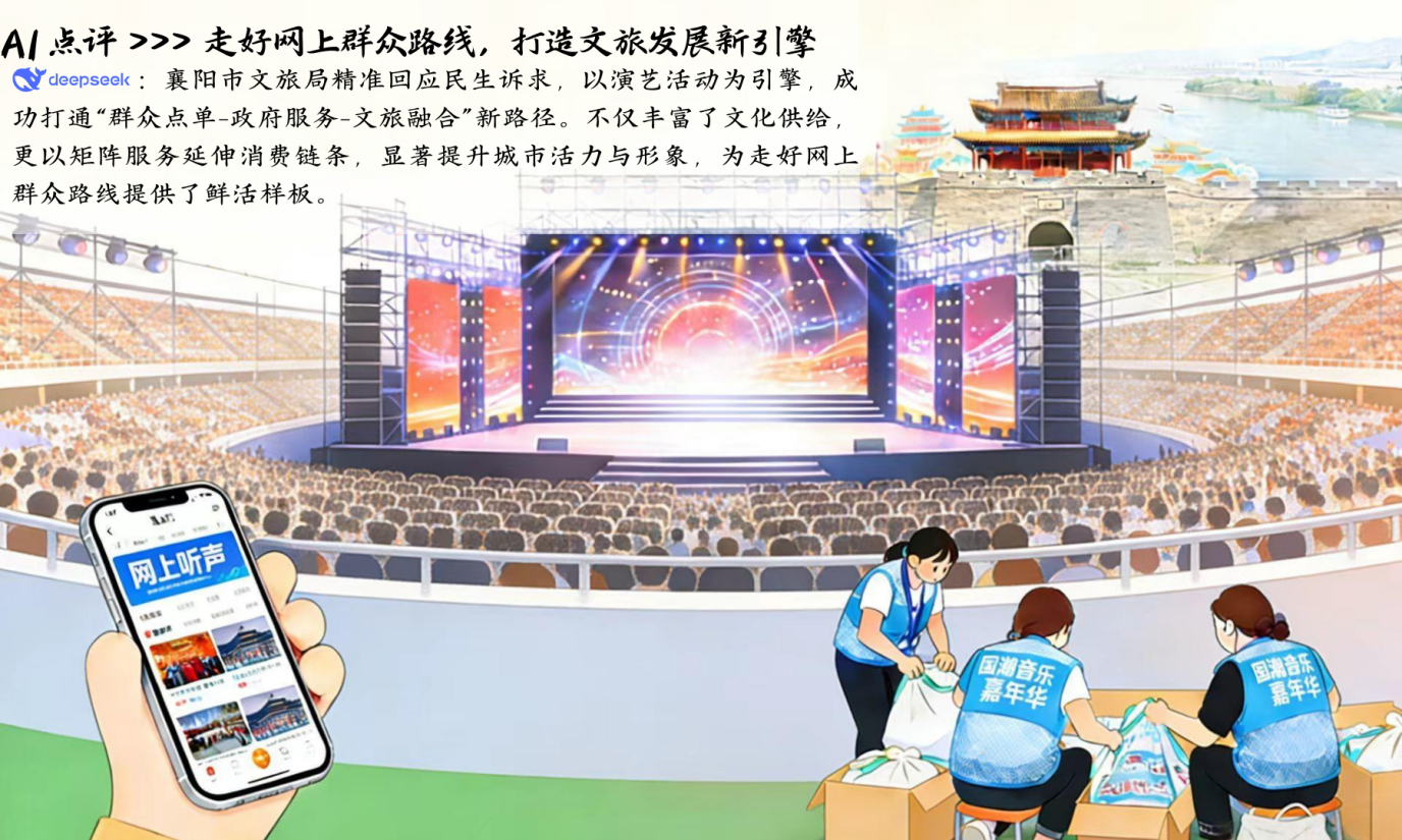 襄阳市文旅部门联合公安、交通、商务、行政审批等部门以及东津新区管委会、樊城区政府,以网友诉求为切入点,将网上群众路线与文旅发展深度融合,不仅是回应群众期待、丰富文化供给的民生工程,更是盘活文旅资源、提升城市形象的发展工程,为新时代政务服务如何“从群众中来、到群众中去”提供了鲜活实践。
