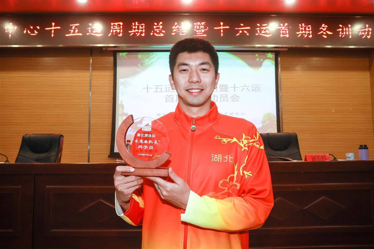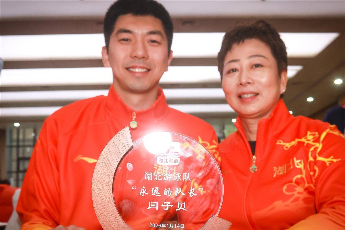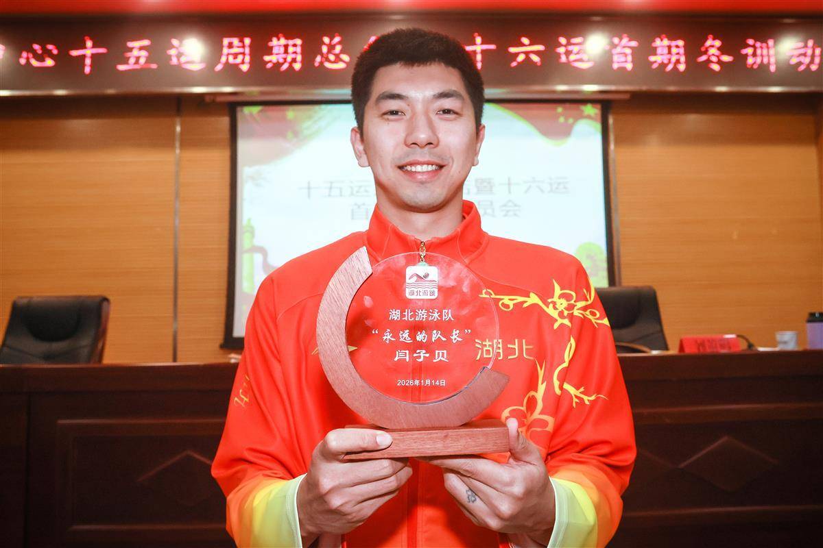 湖北日报讯(记者时龚、马明玉)1月14日,湖北奥体中心,湖北省游泳跳水运动管理中心举行十五运周期总结暨十六运首期冬训动员会,已经转型为教练员的前“亚洲蛙王”、东京奥运银牌得主闫子贝,被授予湖北游泳队“永远的队长”荣誉称号,以表彰闫子贝的卓越贡献,传承湖北游跳人的坚守与担当。