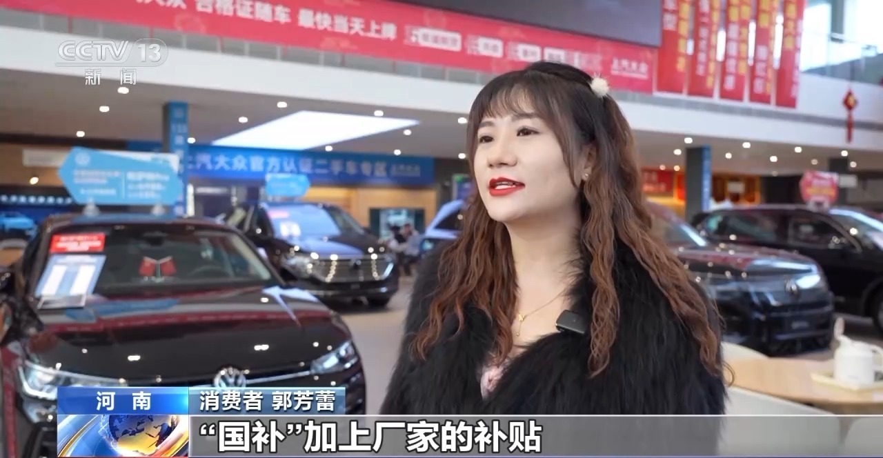 消费者 郭芳蕾:“国补”加上厂家的补贴,整体算下来省了4万多块钱,尤其是春节前买车的话,还有额外的保养礼包赠送。
