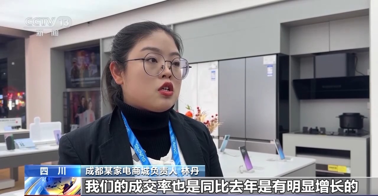 成都某家电商城负责人 林丹:买家电、 3C数码类的产品顾客比较多,在“国补”的加持下,我们的成交率同比是有明显增长的。