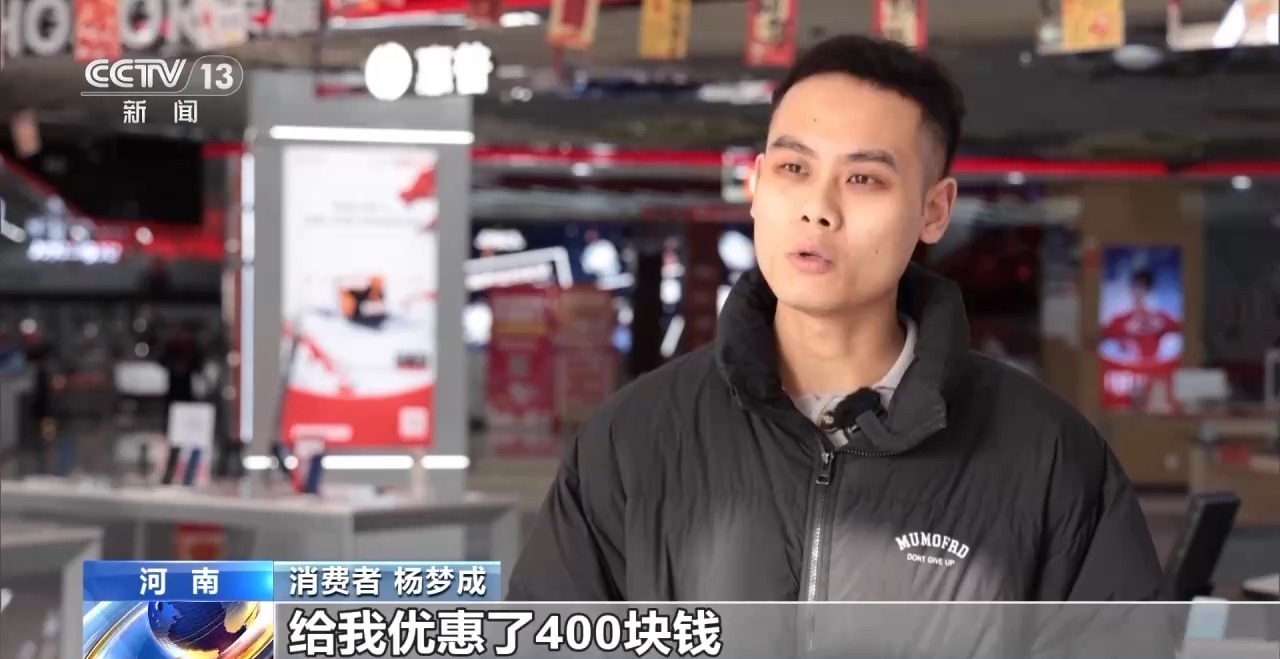 消费者 杨梦成:“国补”的优惠15%给我优惠了400块钱,然后店里边又给我补贴了200块钱,还是比较划算的。