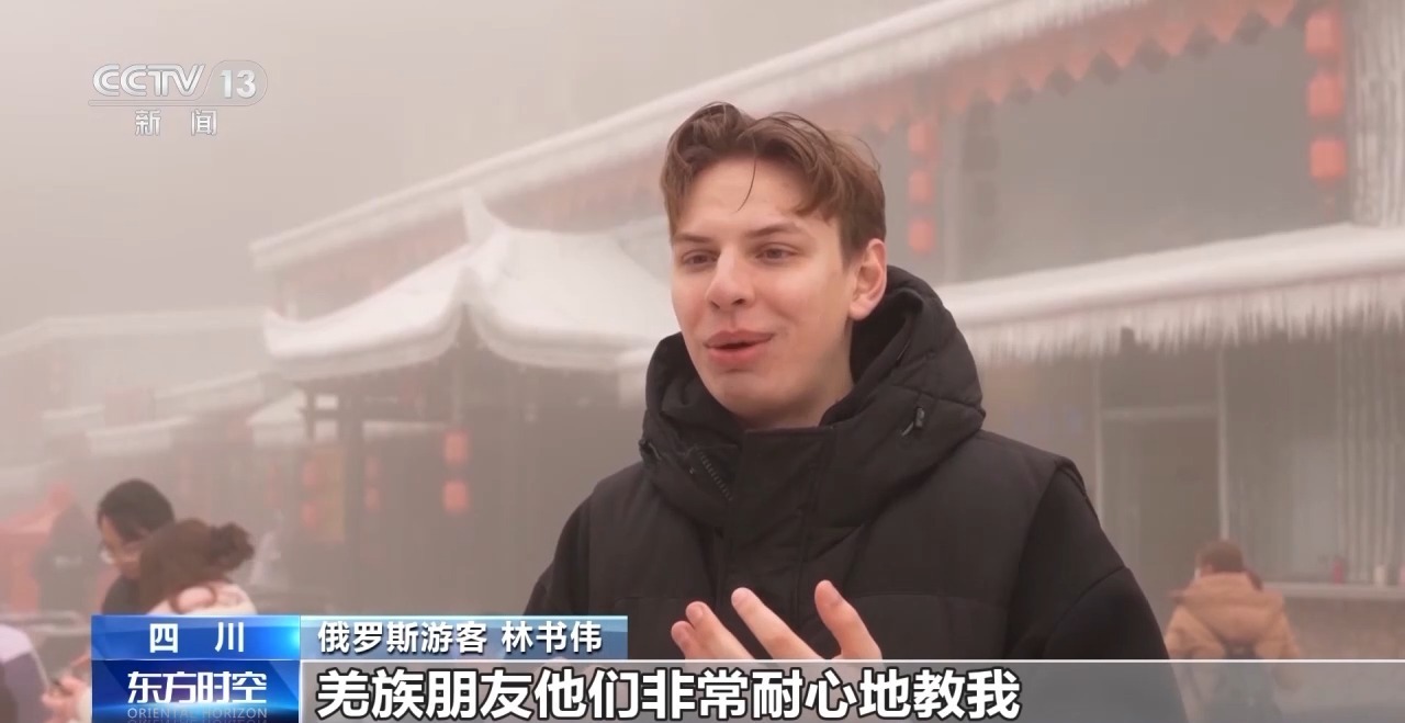 俄罗斯游客 林书伟:羌族朋友他们非常耐心地教我,大家围成一圈跳舞的感觉特别棒。