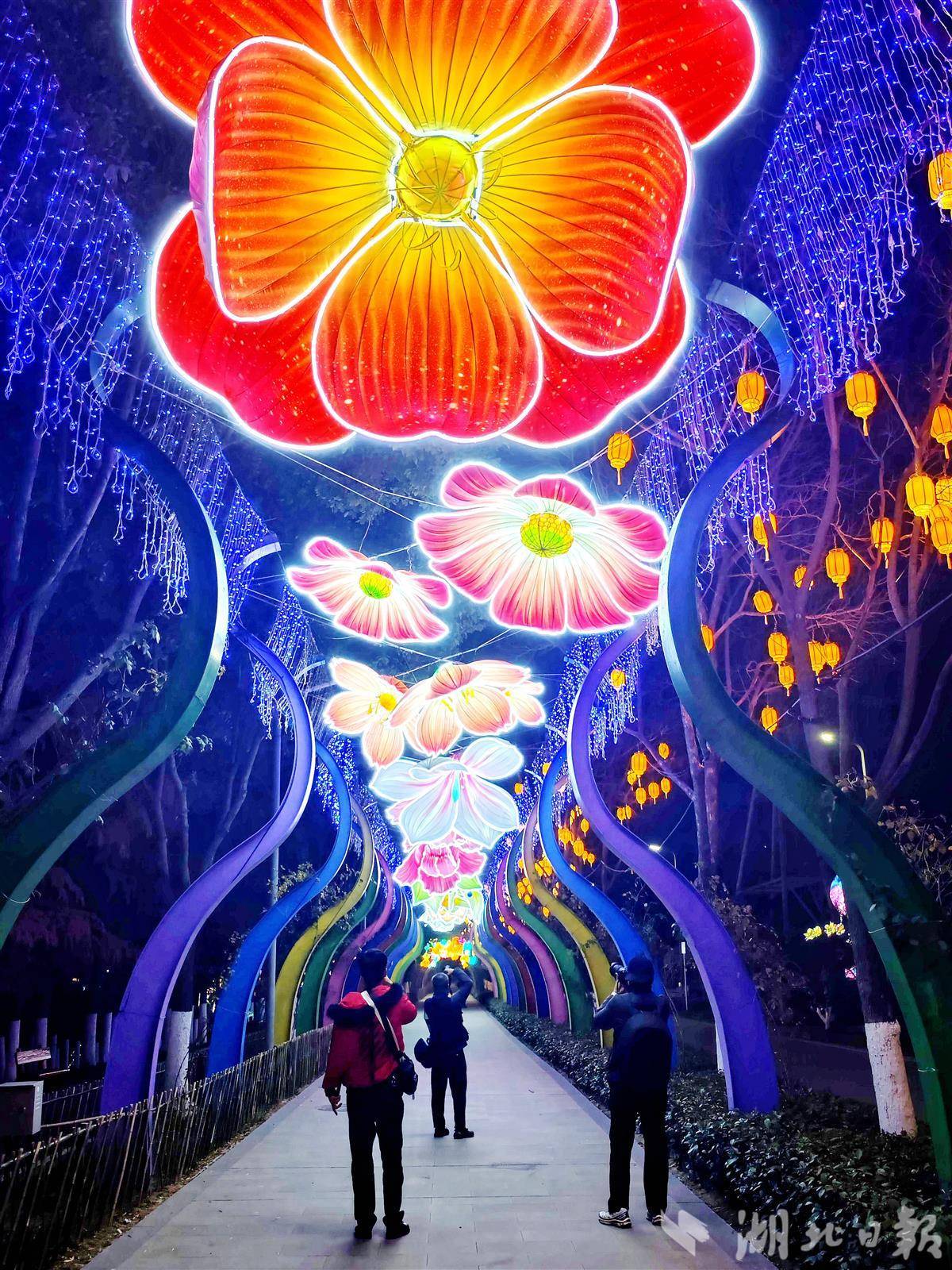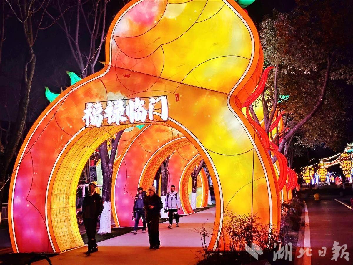 1月14日晚,以“万马奔腾贺新春·千灯璀璨耀江城”为主题的第十届武汉园博园花灯会试亮灯。