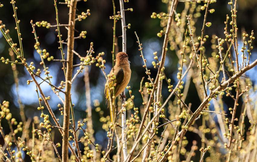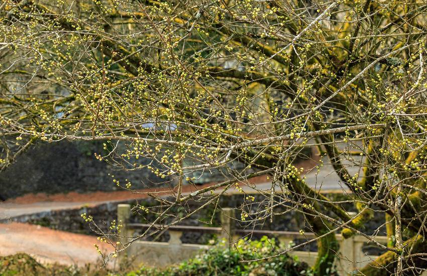 太阳跃过八峰山顶,斜阳穿过花枝,芬芳红艳的各色花朵,以饱满的热情,努力向春天奔赴。