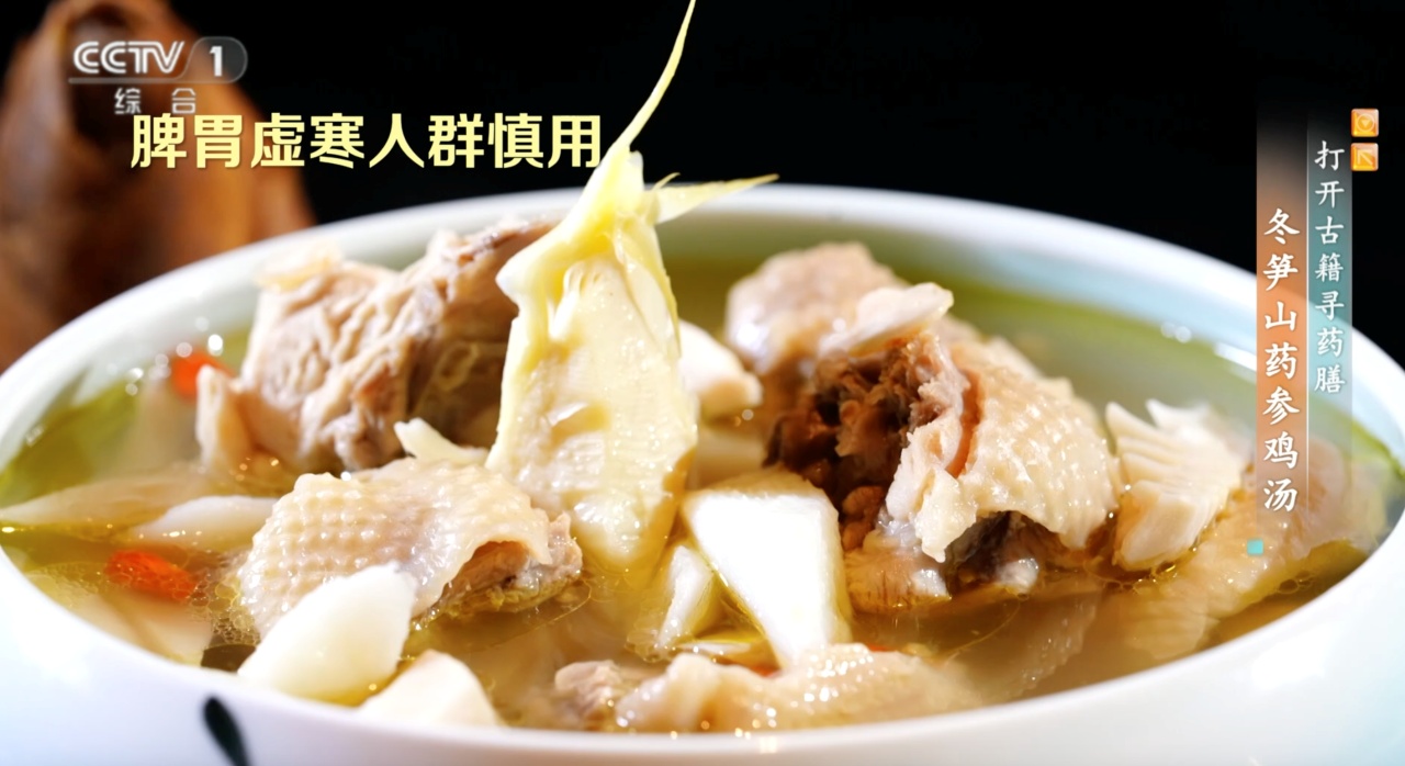 食材:冬笋、山药、西洋参(或党参)、鸡肉、枸杞。