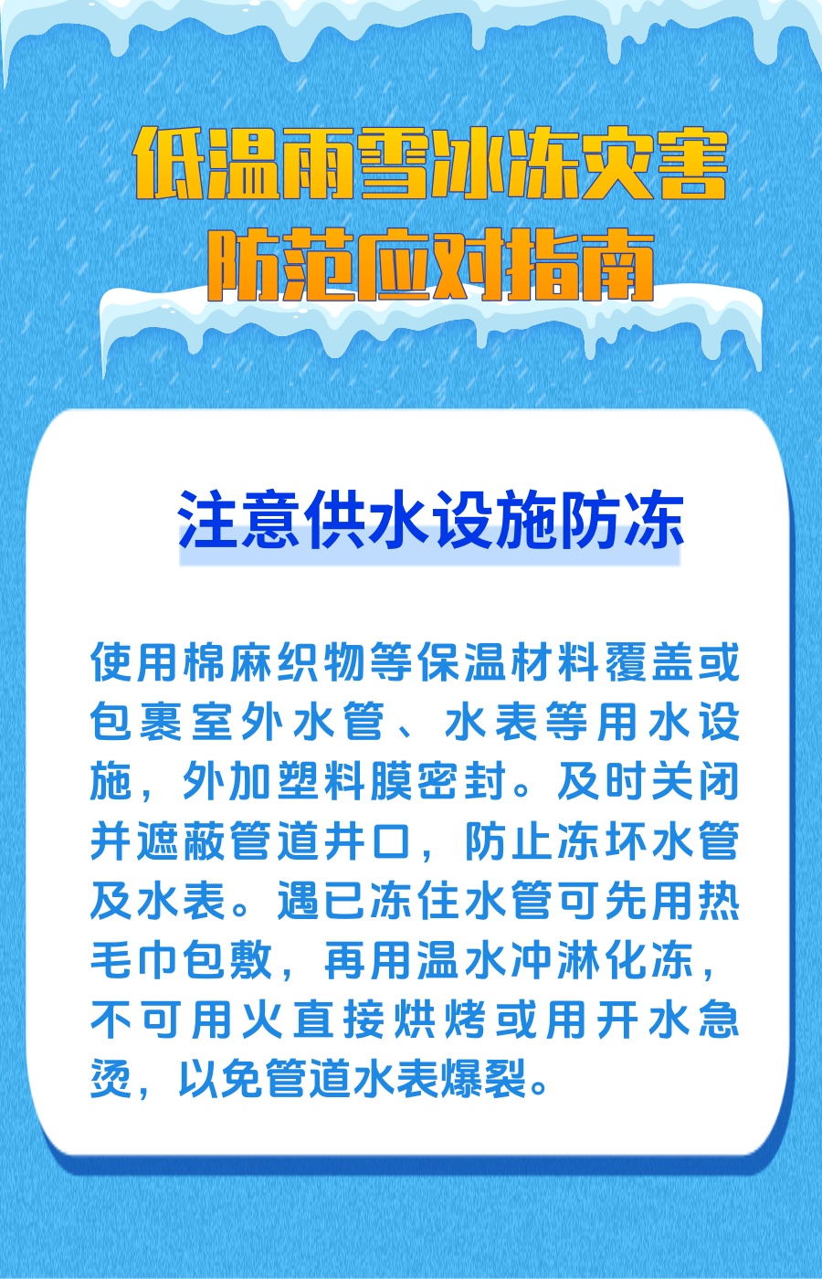 陕西、山西、山东、河南、湖北、湖南、安徽等地部分地区有暴雪和低温雨雪冰冻灾害风险,公众需注意出行交通安全、谨防滑倒,并做好设施农业加固和保暖措施。