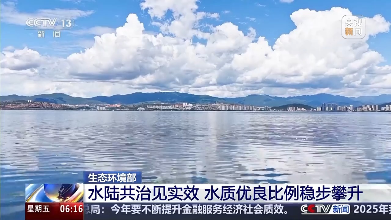 全国地表水Ⅰ至Ⅲ类优良水质断面比例达到91.4%,同比上升1个百分点;近岸海域水质优良比例达到84.9%,同比提高1.2个百分点。“十四五”期间,地表水Ⅰ至Ⅲ类水质断面比例累计上升8个百分点,长江干流连续6年、黄河干流连续4年全线水质稳定保持Ⅱ类,太湖连续2年水质达到Ⅲ类;近岸海域水质优良比例较2020年提高7.5个百分点。
