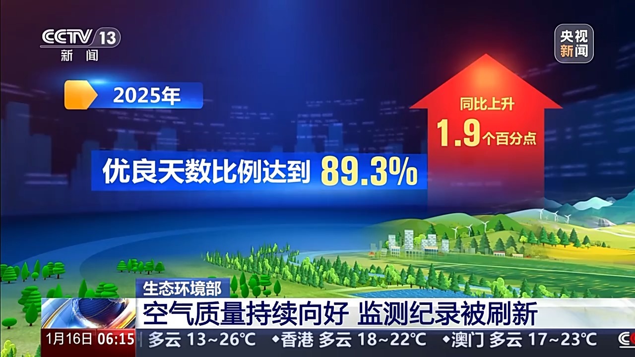 全国PM2.5平均浓度为28微克/立方米,同比下降4.4%;优良天数比例达到89.3%,同比上升1.9个百分点。“十四五”期间,全国PM2.5浓度累计下降20%,优良天数比例创有监测纪录以来最好水平,重污染天数减少25%。
