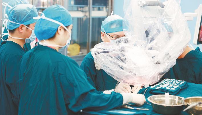 舒凯教授团队正为患者进行脑肿瘤切除手术。(湖北日报通讯员 齐剑东 摄)