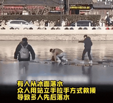1月12日,河南开封市杞县一名10岁男孩在冰面玩耍时,不慎掉入冰窟。附近商贩听到呼救声跳入冰河救人,村民闻讯赶来协助,最终将男孩成功救出并送往医院。