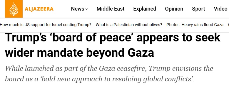 美国提出的“和平委员会”主要由美国人主导,成员包括特朗普的女婿库什纳、中东特使威特科夫以及来自埃及、土耳其、卡塔尔和阿联酋等地区国家的相关代表,却未包含以色列方面具有分量的代表; 过去两年多时间里,以色列在加沙付出相当多的军事代价,但在加沙的战后治理框架中并未获得充分的代表位置,因而对美方不满; 这一现象反映出美国在加沙的战后治理中体现出非常强势的主导性姿态。无论未来加沙“是战还是和”,美国都试图将加沙局势的走向牢牢握紧在自己手中。