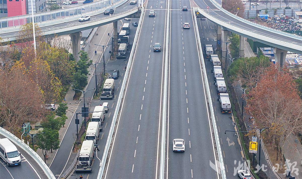 1月18日下午,武汉和平大道高架桥下停放着20余辆新能源环卫车。