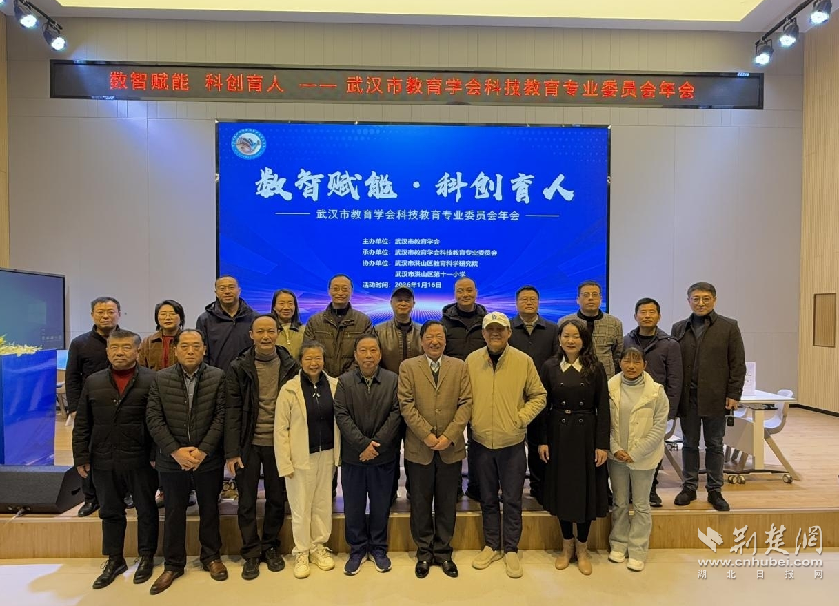 荆楚网(湖北日报网)讯(记者何鹏、许文秀 通讯员霍畅)1月16日,武汉市教育学会科技教育专业委员会年会在洪山区第十一小学举行。本次年会以“数智赋能・科创育人”为主题,创新采用主会场与科技社团趣味嘉年华联动模式,全市科技教育领域领导、专家、教研员及一线教师代表齐聚洪山,共话科技教育发展新路径。