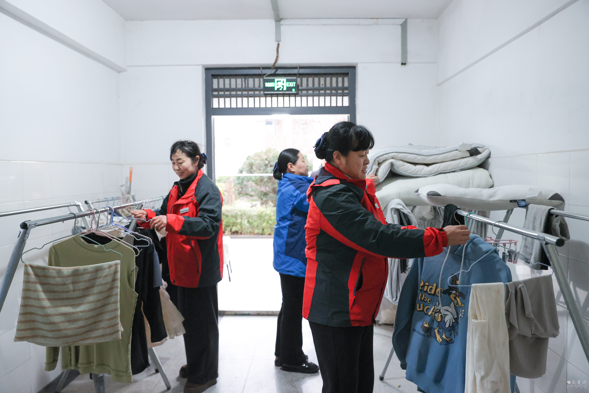 “从上周开始,我们就密切关注天气变化,除了做好衣物收回整理的工作,还提前检查了楼顶排水,也备好了防寒物资。”物业经理周畅说,在每个宿舍楼的信息栏上,都张贴了一张“雨雪天气温馨提示”,写明了天气情况、注意事项和宿管人员联系方式。“考虑到还有100余名学生因学业、实习等原因留校,我们先做了提醒工作,如果确属无人认领的物品,我们集中开展统一收回和保管。”周畅说,宿舍管理人员实行24小时值班,每个值班的宿管人员都需对楼栋的22个点位进行检查。楼栋长余春芳拿着登记表,刚完成第一轮检查工作:“每天要检查三次,相当于要重点查看66次,每个点位的情况都要写清楚,有问题第一时间汇报。”
