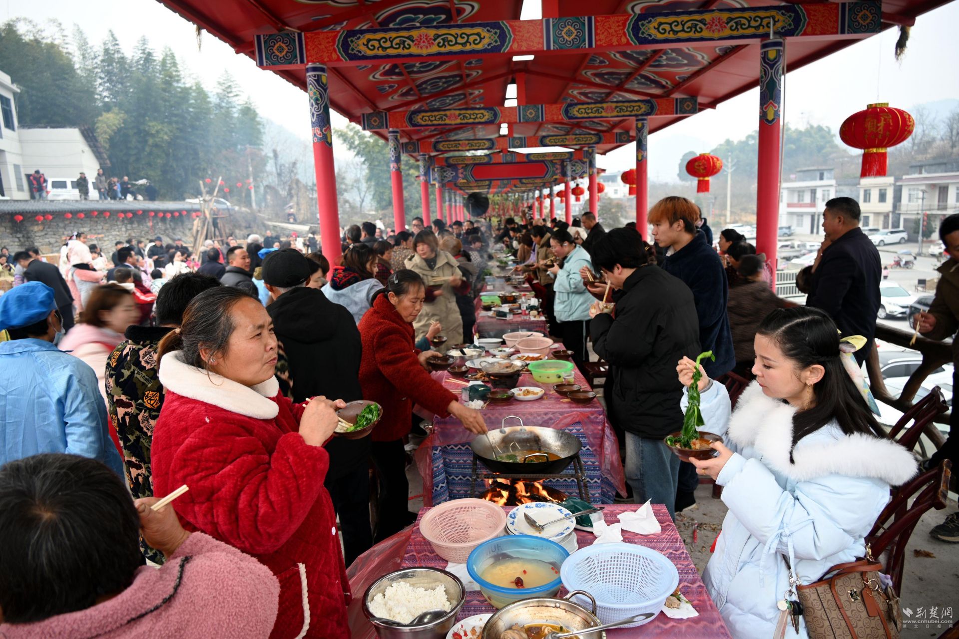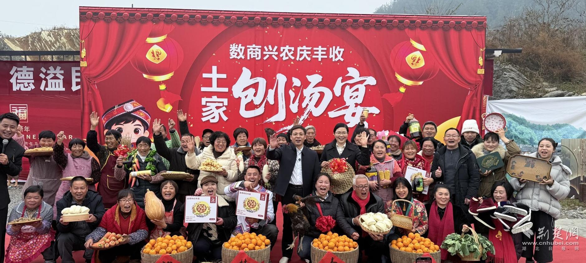 荆楚网(湖北日报网)讯(通讯员向继武、李贤锋)同庆丰收年,共叙家乡情。1月18日,一场“数商兴农庆丰收”为主题的“土家刨汤宴”在建始县业州镇乐家坝村德溢民生态农业广场举行。此次刨汤宴活动由当地农民女企业家秦娥自费操办,吸引了来自全国各地网红主播、村播、游客及周边村民2000余人参加。