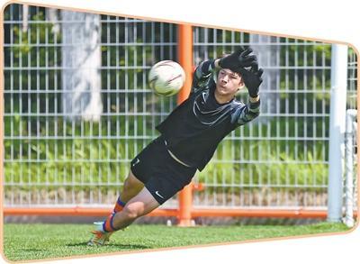 退役前,周海滨踢过不少位置:后腰、前腰、边前卫……在位于山东潍坊的泰山足校训练场上,他又临时客串起守门员。