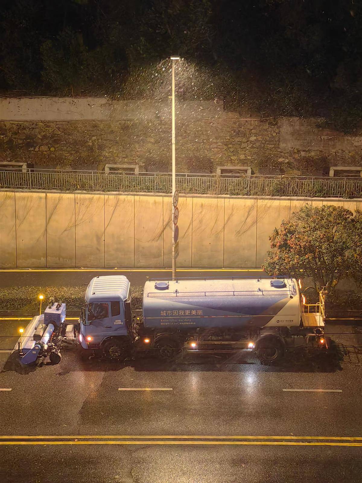 环卫车辆一大早已经开始清扫路面。(市民 姚先生 摄)