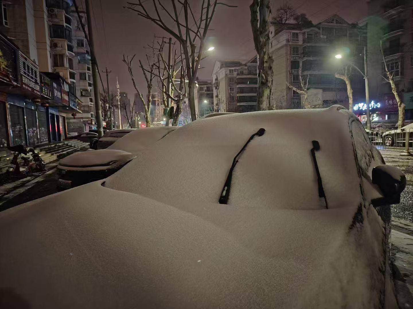 积雪已经覆盖车辆。(武汉市民 陈涌 摄)