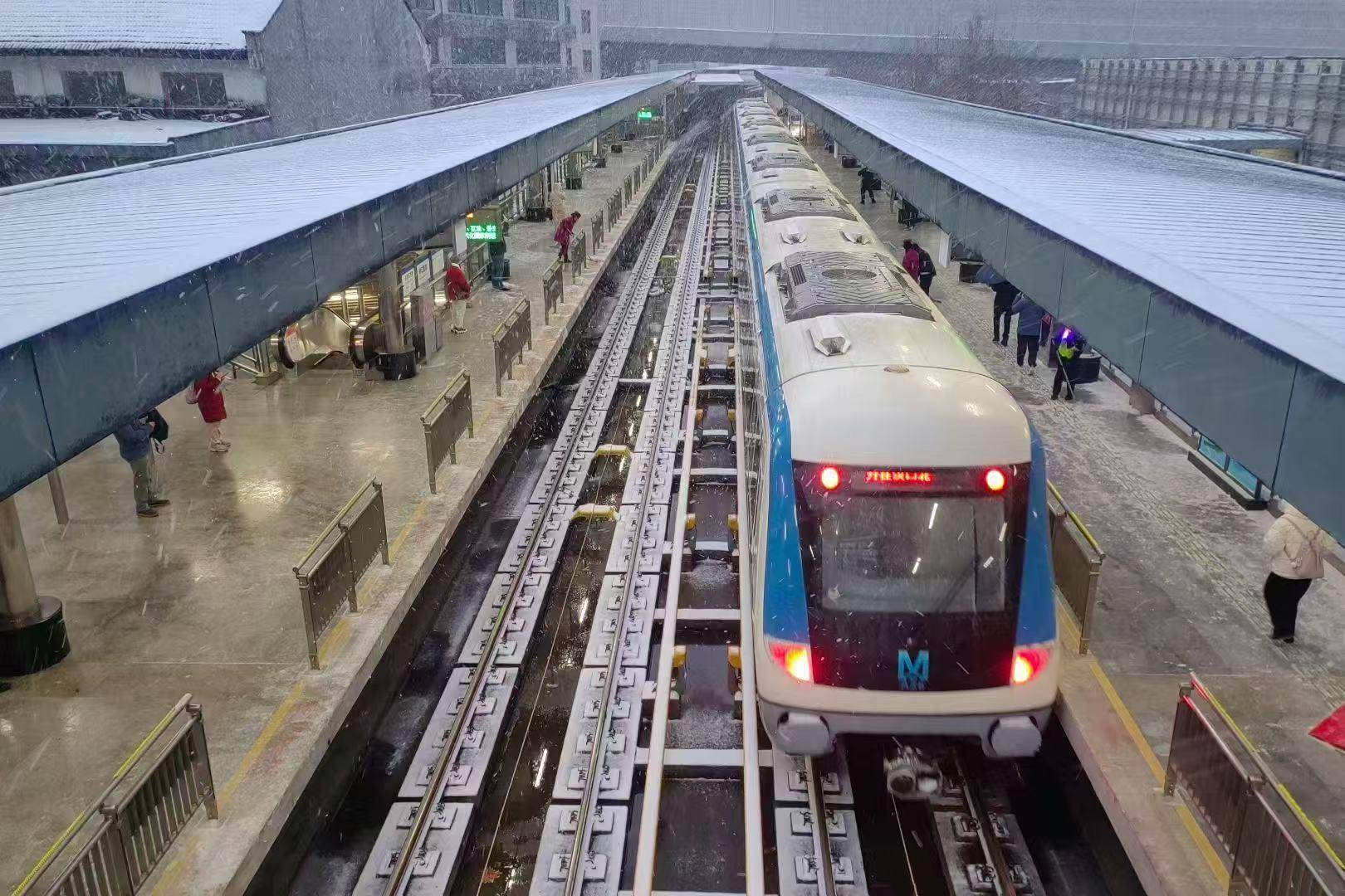 桥口地铁站工作人员全员5点40分上岗扫雪。(通讯员 常永华 摄)