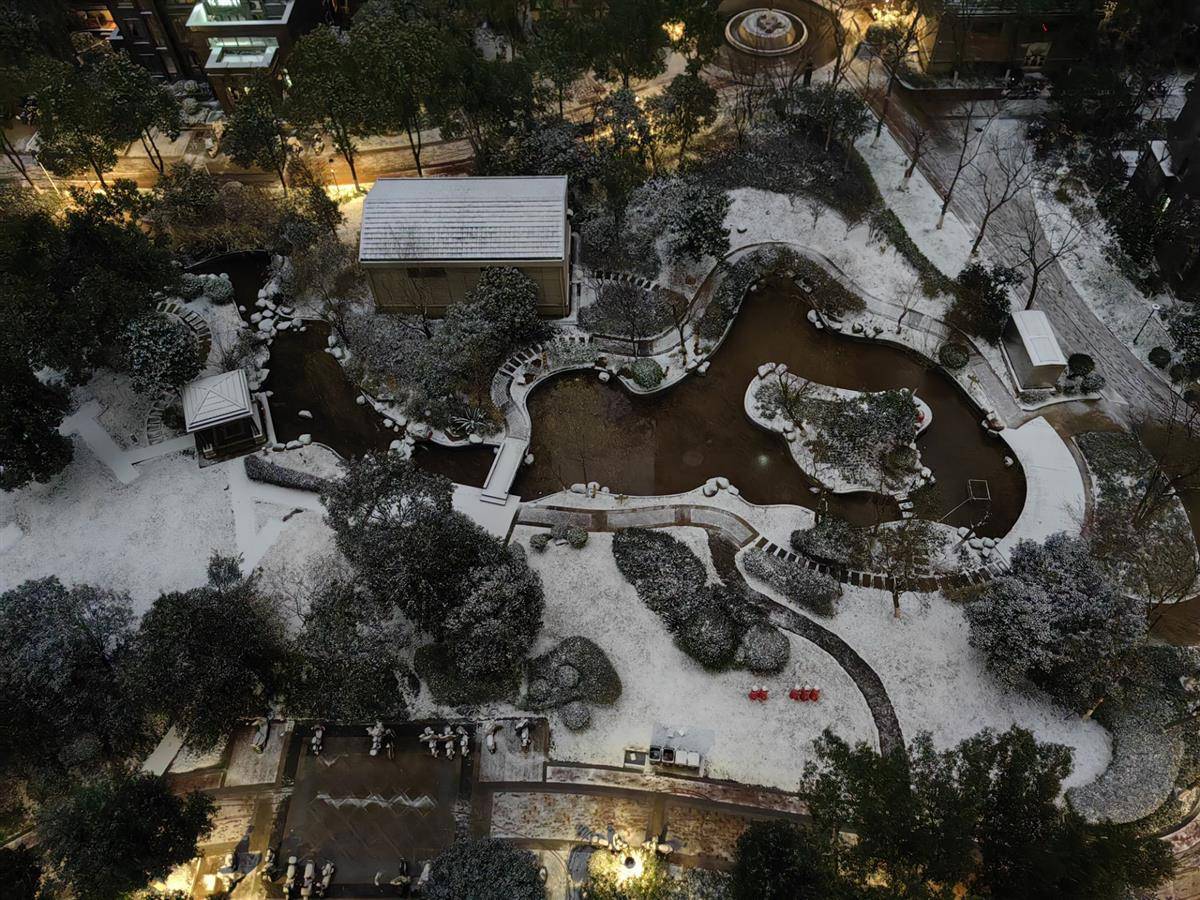 1月20日早晨6:56,武汉市百瑞景小区,景观花园里已经被白雪覆盖。