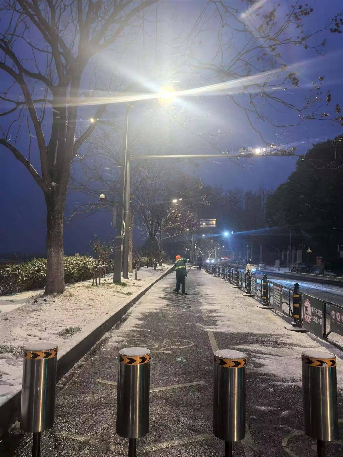 1月20日早晨7时许,武昌水果湖,环卫工早起扫雪(通讯员常小红摄)